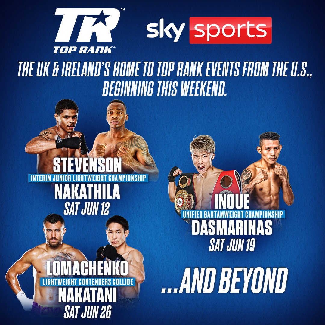 SKY SPORTS TO DELIVER MORE BOXING THAN EVER BEFORE AS PART OF A NEW CHAPTER FOR THE SPORT Two new partnerships will see Top Rank and BOXXER fights on Sky Sports until 2025, ensuring boxing fans will see the pick of the sport across the world Sky Sports license agreement to bring Top Rank shows … Continue reading SKY SPORTS TO DELIVER MORE BOXING THAN EVER BEFORE AS PART OF A NEW CHAPTER FOR THE SPORT