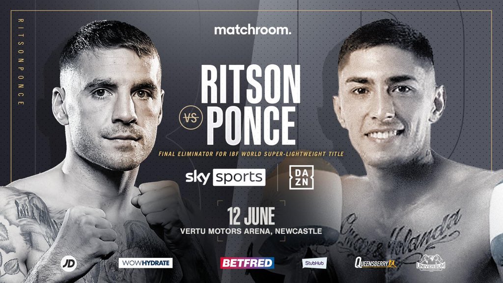 RITSON FACES PONCE IN IBF WORLD TITLE FINAL ELIMINATOR ‘The Sandman’ returns on June 12 Lewis Ritson will face Jeremias Ponce in a Final Eliminator for the IBF Super-Lightweight World Title at the Vertu Motors Arena, Newcastle on Saturday June 12, live on Sky Sports in the UK and on DAZN in the US and … Continue reading RITSON FACES PONCE IN IBF WORLD TITLE FINAL ELIMINATOR