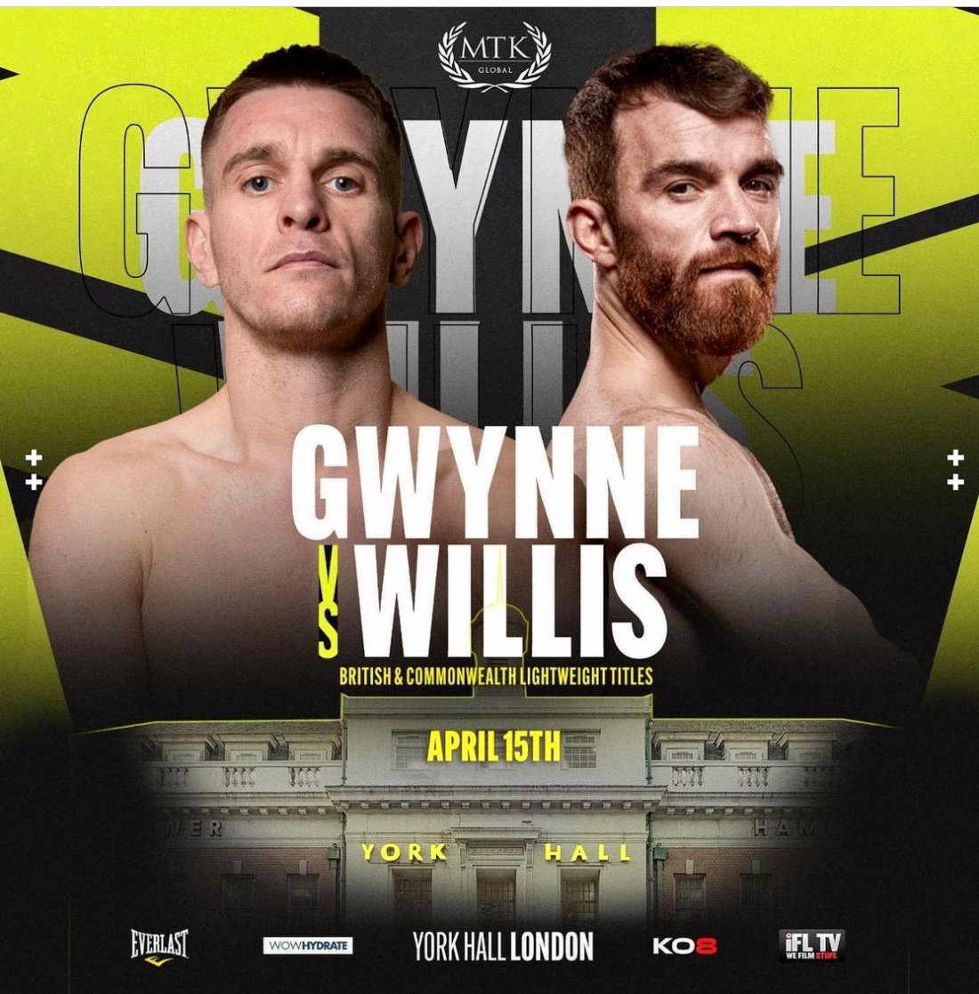 Gavin Gwynne vs. Luke WillisHeadlines MTK Fight Night in AprilGavin Gwynne and Luke Willis will collide for the British and Commonwealth lightweight titles as part of a stacked #MTKFightNight at York Hall in London on April 15. The event will be broadcast live in the US on ESPN+ in association with Top Rank, and worldwide … Continue reading Gavin Gwynne vs. Luke Willis Headlines MTK Fight Night in April